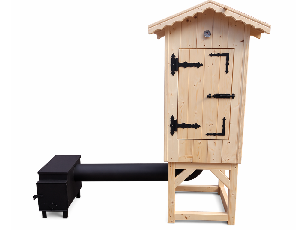 Nejprodávanejší dřevěná udírna s topeništěm, základní dřevěná střecha s klapkou