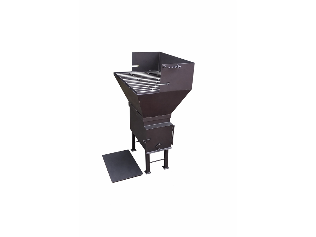 Kovový podstavec pro udírnu 60x60, kouřovod 150mm, kvalitní topeniště s odjímatelným poklopem a možností rozšířit o grilovací kámen, grilovací roštík nebo grilovací nástavbu s motorkem, řožní a roštěm.